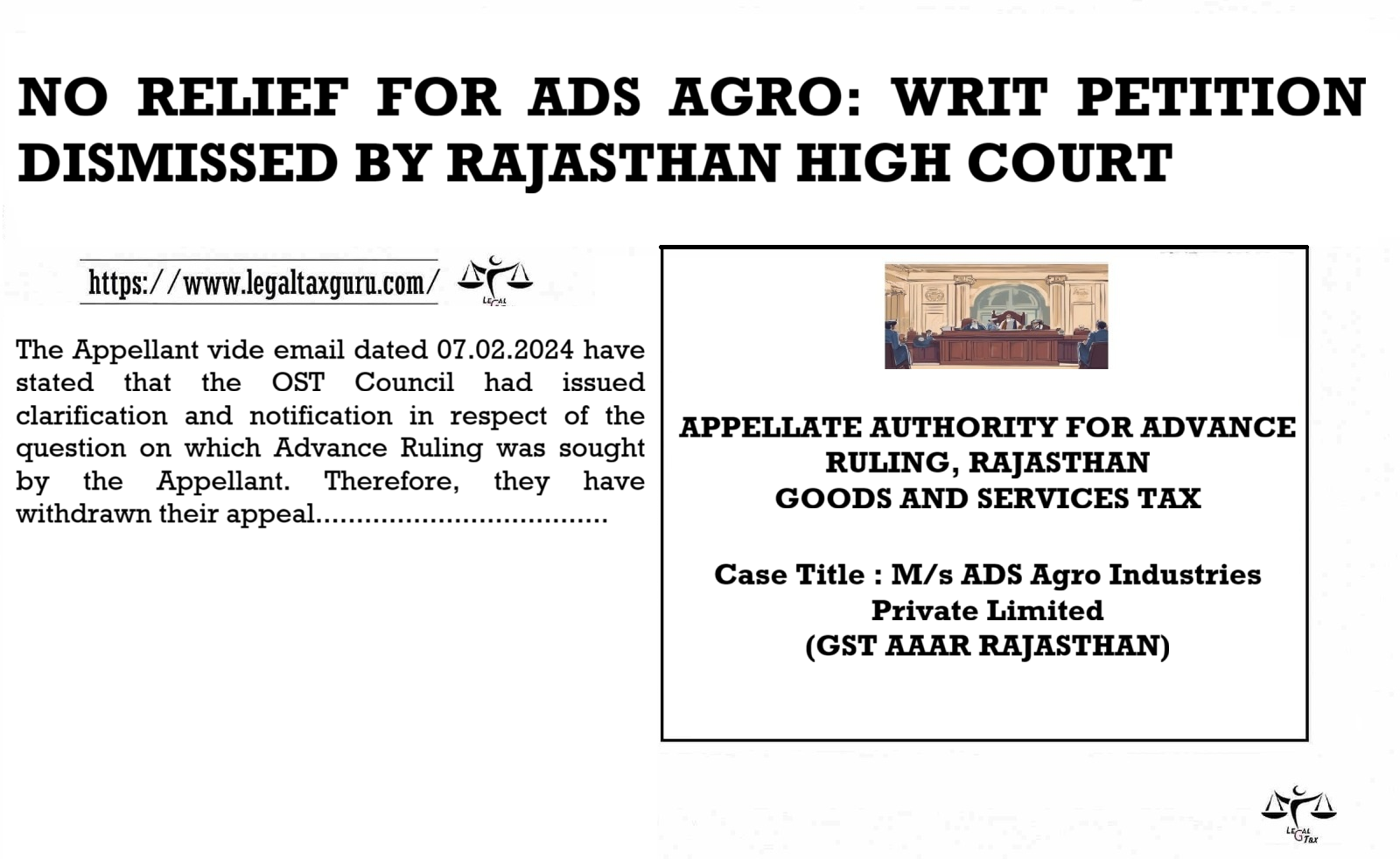 The Appellant vide email dated 07.02.2024 have stated that the GST Council had issued clarification and notification in respect of the question on which Advance Ruling was sought by the Appellant. Therefore, they have withdrawn their appeal.