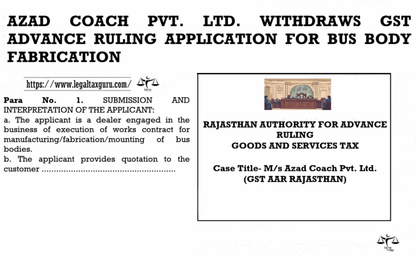 AZAD COACH PVT. LTD. WITHDRAWS GST ADVANCE RULING APPLICATION FOR BUS BODY FABRICATION