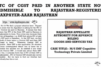 “ITC OF CGST PAID IN ANOTHER STATE NOT ADMISSIBLE TO RAJASTHAN-REGISTERED TAXPAYER-AAAR RAJASTHAN”