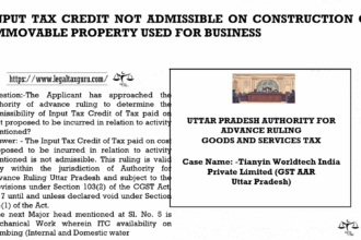 INPUT TAX CREDIT NOT ADMISSIBLE ON CONSTRUCTION OF IMMOVABLE PROPERTY USED FOR…