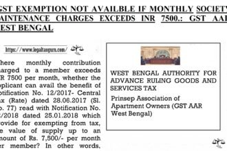 GST EXEMPTION NOT AVAILABLE IF MONTHLY SOCIETY MAINTENANCE CHARGES EXCEEDS INR 7500/- : GST AAR WEST BENGAL