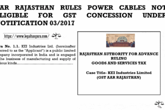 AAR RAJASTHAN RULES POWER CABLES NOT ELIGIBLE FOR GST CONCESSION UNDER NOTIFICATION…