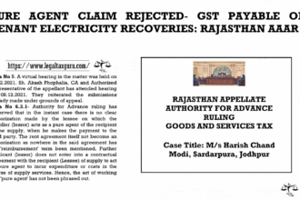 PURE AGENT CLAIM REJECTED- GST PAYABLE ON TENANT ELECTRICITY RECOVERIES: RAJASTHAN AAAR…