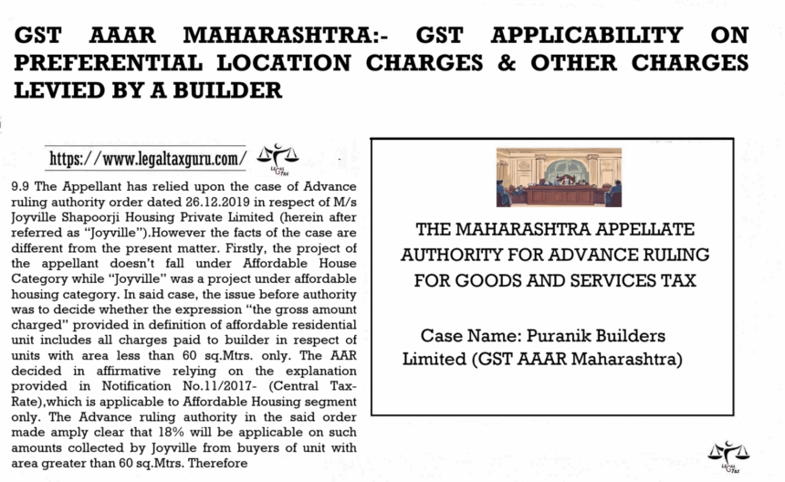 GST AAAR MAHARASHTRA:- GST APPLICABILITY ON PREFERENTIAL LOCATION CHARGES & OTHER CHARGES LEVIED BY A BUILDER