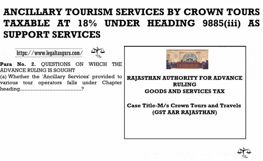 ANCILLARY TOURISM SERVICES BY CROWN TOURS TAXABLE AT 18% UNDER HEADING 9885(iii) AS SUPPORT SERVICES