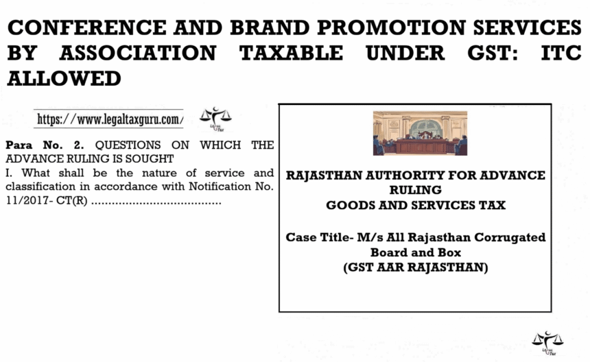 CONFERENCE PACKAGES, EXHIBITOR FEES & BRAND PROMOTION CLASSIFIED UNDER GST: ITC ALLOWED ON EVENT RELATED SERVICES
