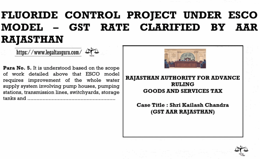 FLUORIDE CONTROL PROJECT UNDER ESCO MODEL – GST RATE CLARIFIED BY AAR RAJASTHAN
