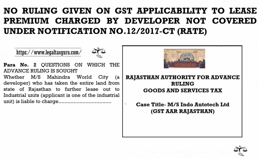 LEASE PREMIUM ON INDUSTRIAL UNITS; NO RULING AS APPLICANT WITHDRAWS CASE: RAJASTHAN AAR
