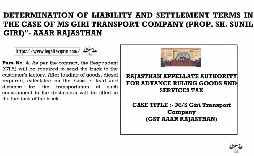 DETERMINATION OF LIABILITY AND SETTLEMENT TERMS IN THE CASE OF MS GIRI TRANSPORT COMPANY (PROP. SH. SUNIL GIRI)”- AAAR RAJASTHAN