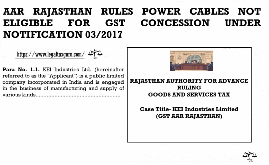 AAR RAJASTHAN RULES POWER CABLES NOT ELIGIBLE FOR GST CONCESSION UNDER NOTIFICATION 03/2017
