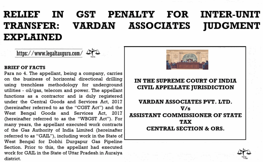 RELIEF IN GST PENALTY FOR INTER-UNIT TRANSFER: VARDAN ASSOCIATES JUDGMENT EXPLAINED