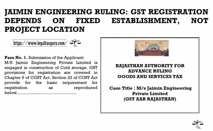 JAIMIN ENGINEERING RULING: GST REGISTRATION DEPENDS ON FIXED ESTABLISHMENT, NOT PROJECT LOCATION