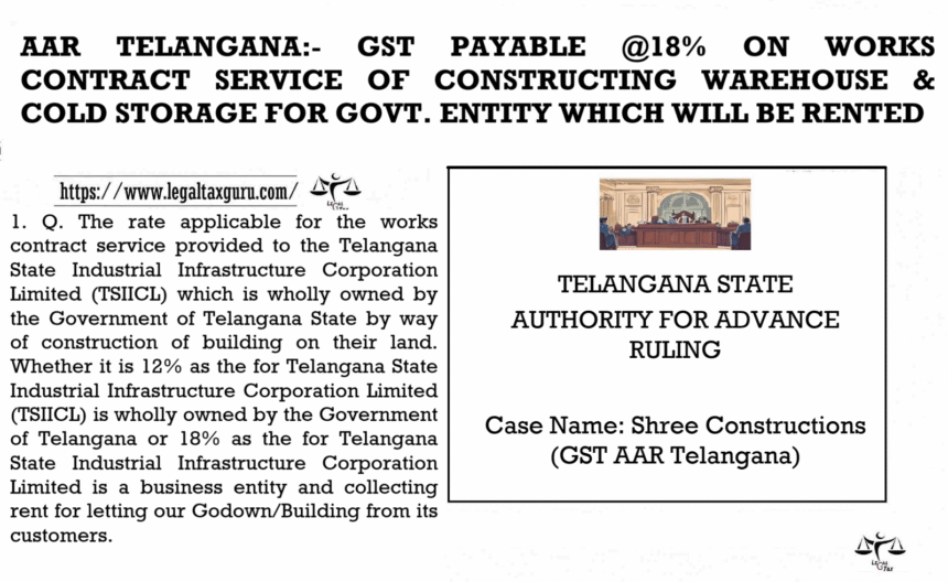 AAR TELANGANA:- GST PAYABLE @18% ON WORKS CONTRACT SERVICE OF CONSTRUCTING WAREHOUSE & COLD STORAGE FOR GOVT. ENTITY WHICH WILL BE RENTED
