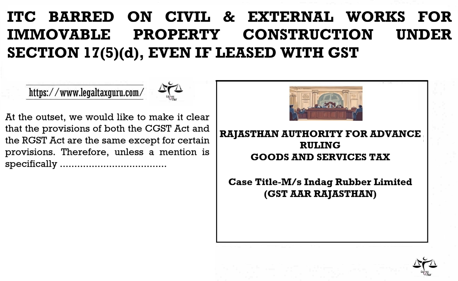 The applicant is not eligible to claim credit of the GST charged by vendor for supply of goods and services to it, which are used for carrying out the activities (Civil Work and External Developmental Works) for setting up of MRO facility