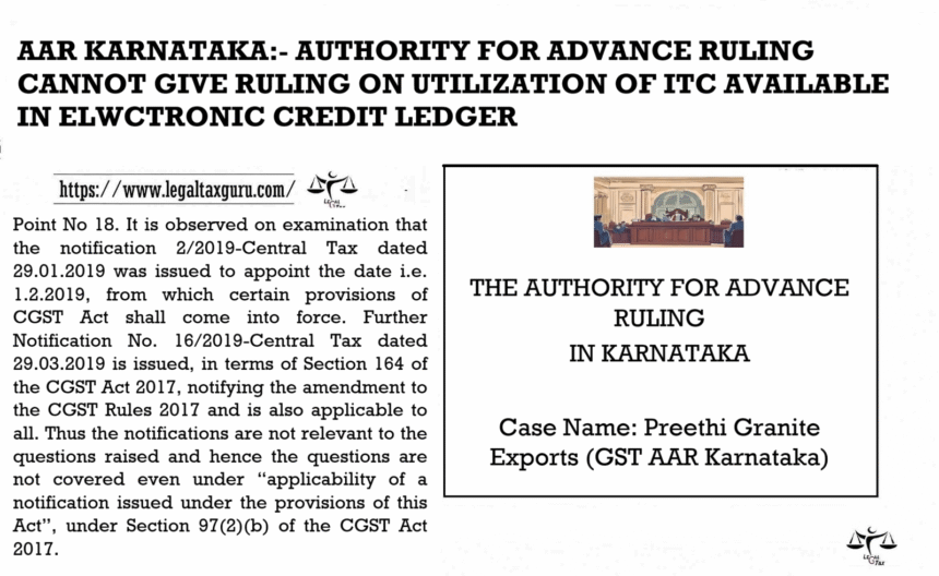 AAR KARNATAKA:- AUTHORITY FOR ADVANCE RULING CANNOT GIVE RULING ON UTILIZATION OF ITC AVAILABLE IN ELECTRONIC CREDIT LEDGER