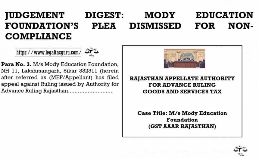 JUDGEMENT DIGEST: MODY EDUCATION FOUNDATION’S PLEA DISMISSED FOR NON-COMPLIANCE