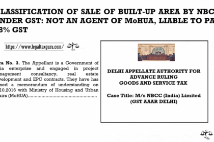 CLASSIFICATION OF SALE OF BUILT-UP AREA BY NBCC UNDER GST: NOT AN…