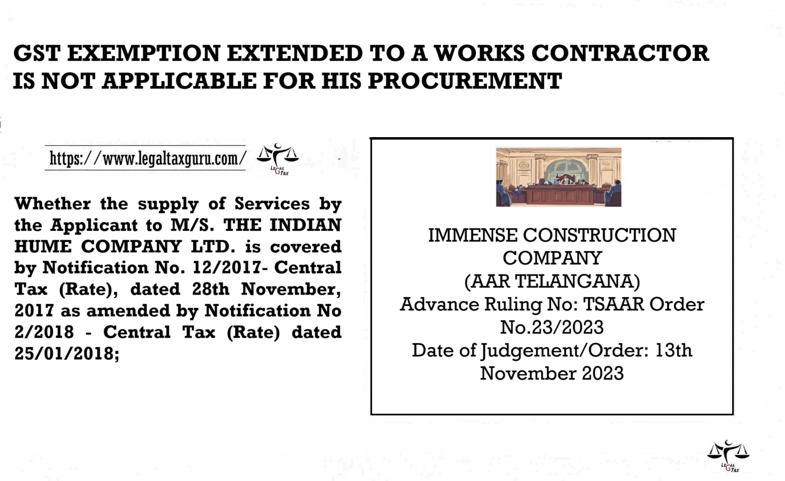 GST EXEMPTION EXTENDED TO A WORK CONTRACTOR IS NOT APPLICABLE FOR HIS PROCUREMENT TELANGANA STATE AUTHORITY FOR ADVANCE RULING Case…