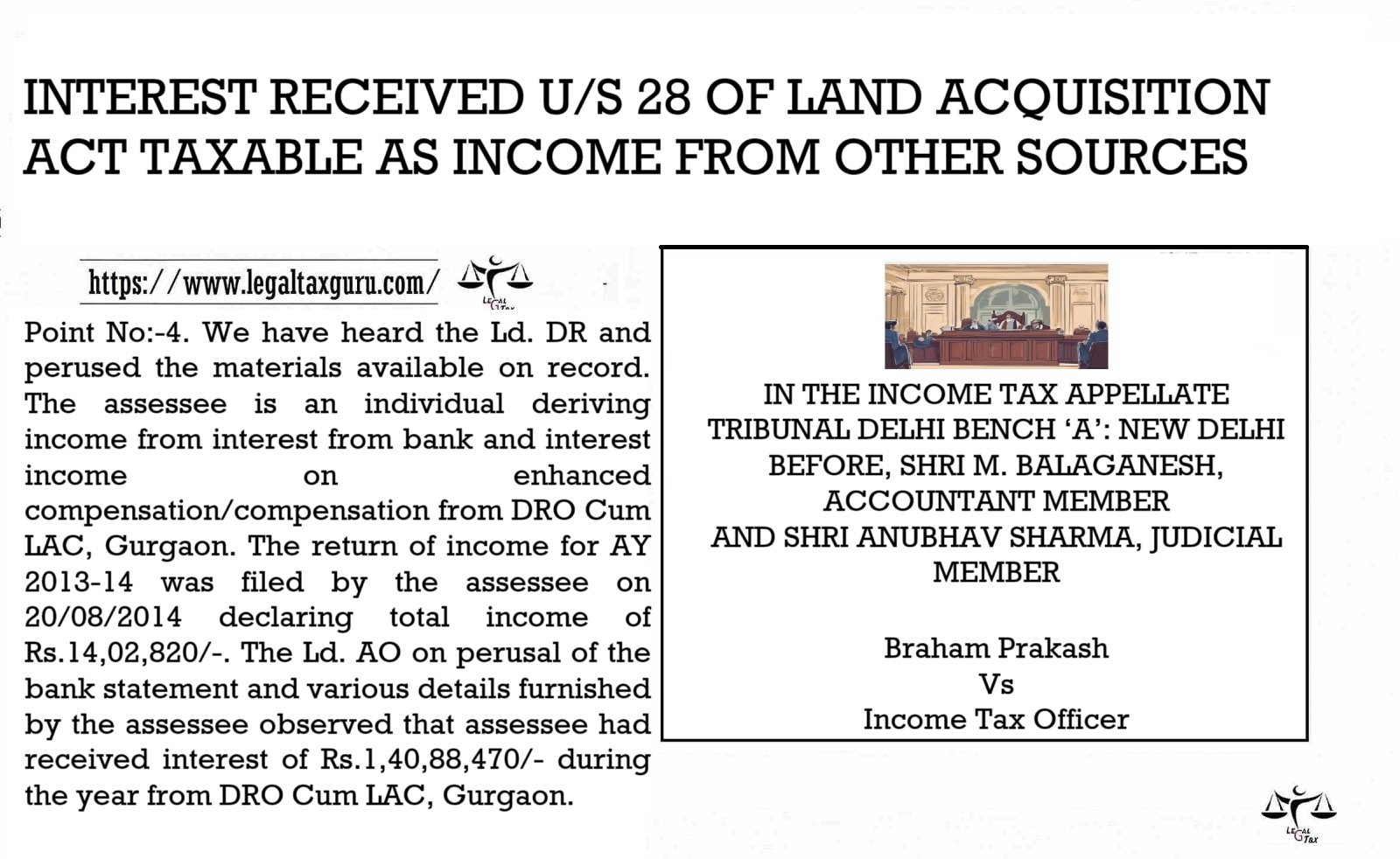 INTEREST RECEIVED U/S 28 OF LAND ACQUISITION ACT TAXABLE AS INCOME FROM OTHER SOURCES IN THE INCOME TAX APPELLATETRIBUNAL DELHI…