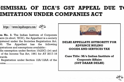 DISMISSAL OF IICA’S GST APPEAL DUE TO LIMITATION UNDER COMPANIES ACT DELHI…