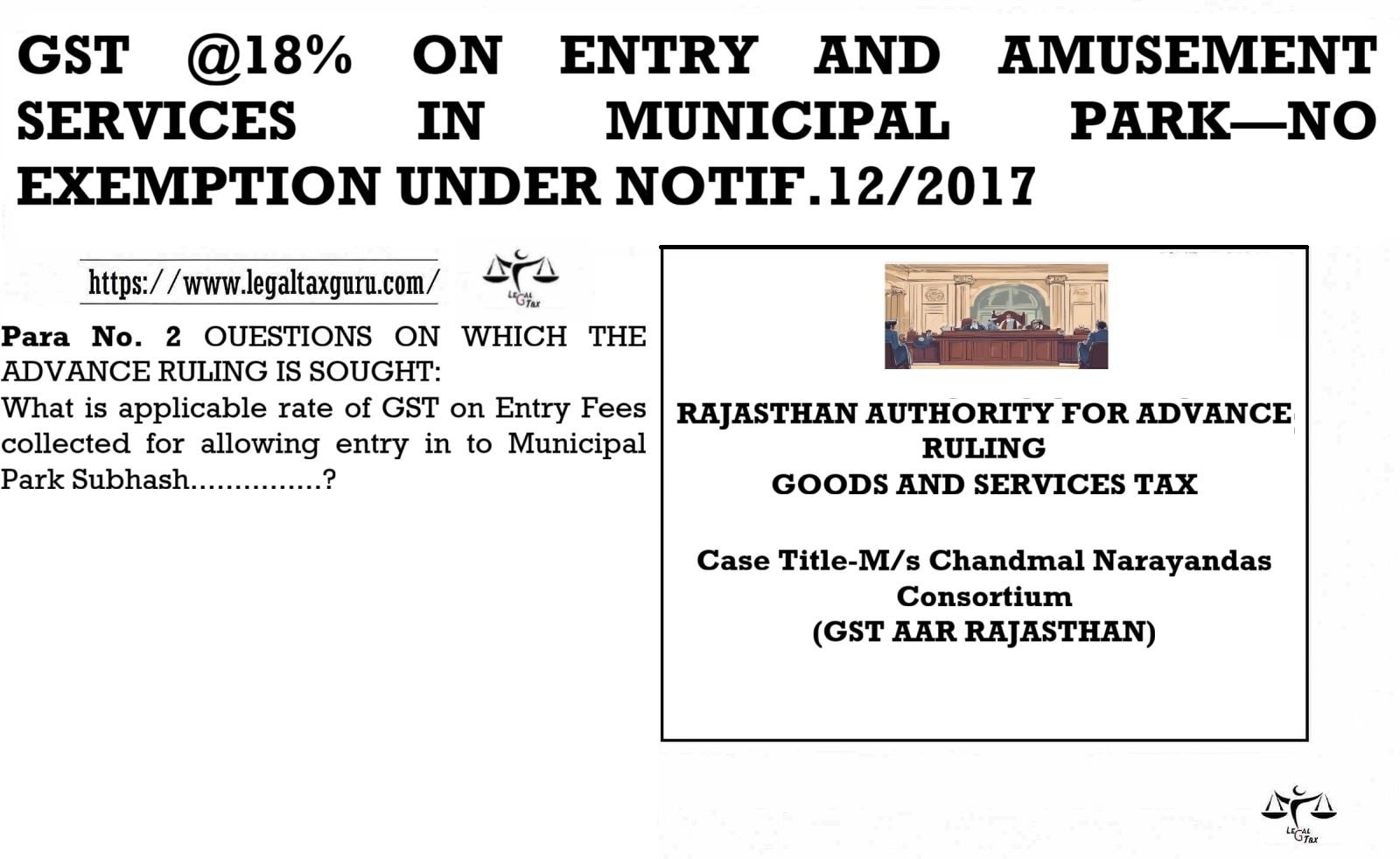 GST @18% ON ENTRY AND AMUSEMENT SERVICES IN MUNICIPAL PARK—NO EXEMPTION UNDER NOTIF.12/2017 RAJASTHAN AUTHORITY FOR ADVANCE RULING GOODS AND…