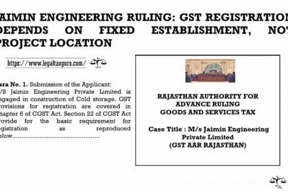 JAIMIN ENGINEERING RULING: GST REGISTRATION DEPENDS ON FIXED ESTABLISHMENT, NOT PROJECT LOCATION…