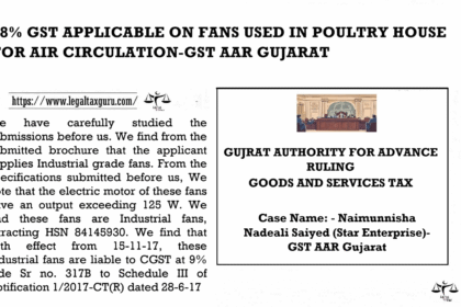 18% GST APPLICABLE ON FANS USED IN POULTRY HOUSE FOR AIR CIRCULATION- (GST AAR GUJARAT)