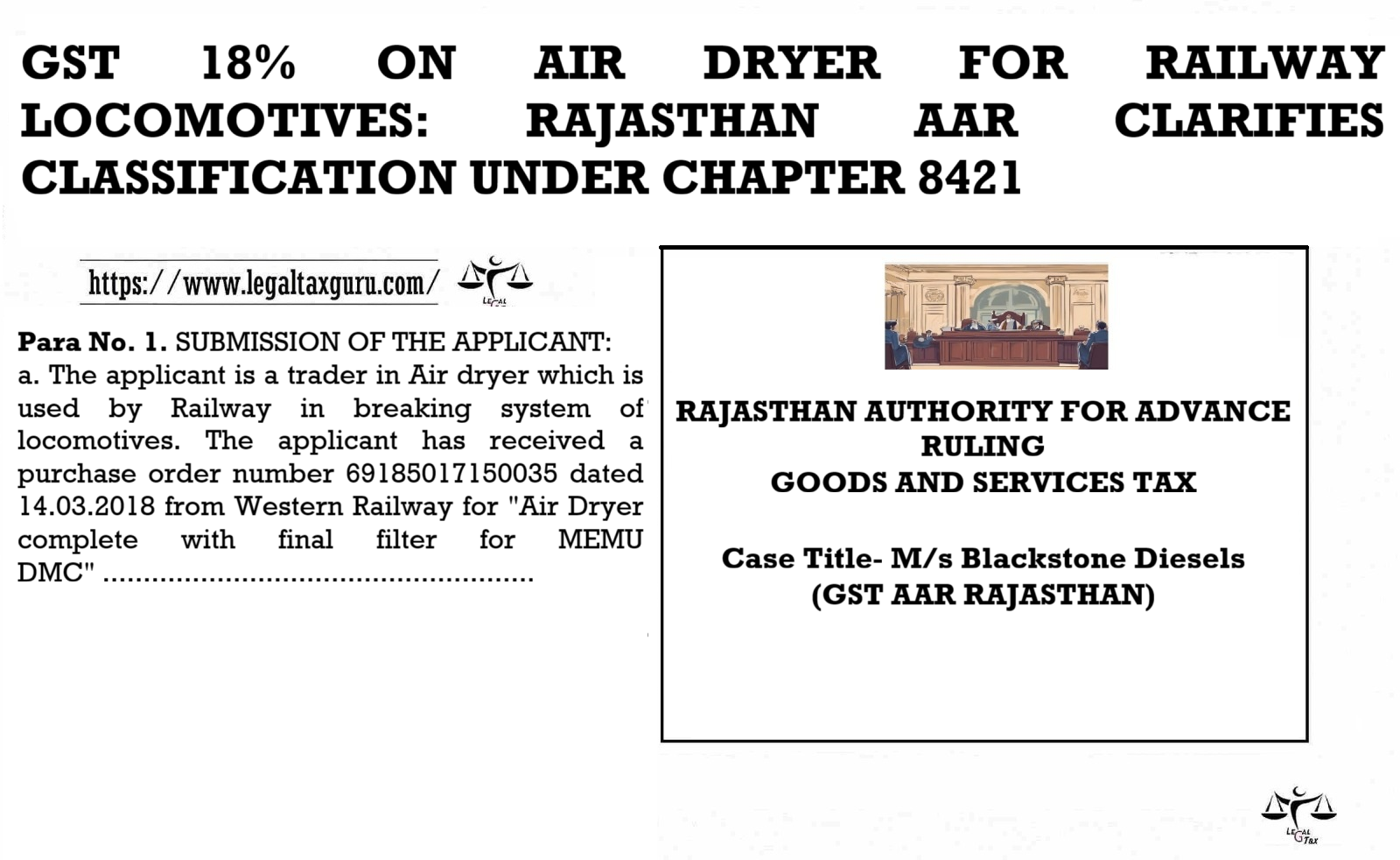 GST 18% ON AIR DRYER FOR RAILWAY LOCOMOTIVES: RAJASTHAN AAR CLARIFIES CLASSIFICATION UNDER CHAPTER 8421 RAJASTHAN AUTHORITY FOR ADVANCE RULING…