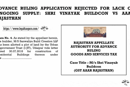 ADVANCE RULING APPLICATION REJECTED FOR LACK OF ONGOING SUPPLY: SHRI VINAYAK BUILDCON…