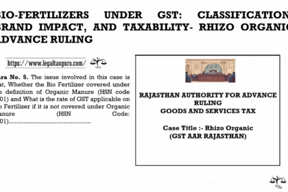 BIO-FERTILIZERS UNDER GST: CLASSIFICATION, BRAND IMPACT, AND TAXABILITY- RHIZO ORGANIC ADVANCE RULING…