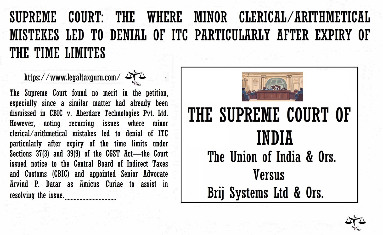 THE SUPREME COURT: THE WHERE MINOR CLERICAL/ARITHMETICAL MISTEKES LED TO DENIAL OF ITC PARTICULARLY AFTER EXPIRY OF THE TIME LIMITES