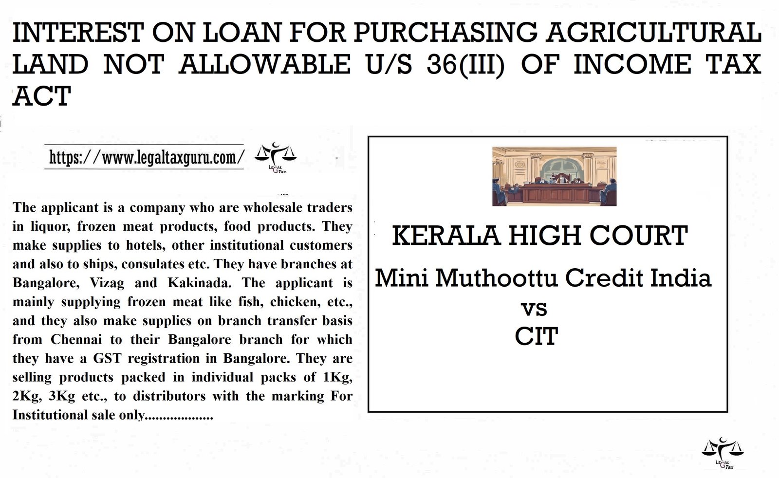 INTEREST ON LOAN FOR PURCHASING AGRICULTURAL LAND NOT ALLOWABLE U/S 36(III) OF INCOME TAX ACT Mini Muthoottu Credit India (P)…