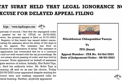ITAT SURAT HELD THAT LEGAL IGNORANCE NO EXCUSE FOR DELAYED APPEAL FILINGIN…